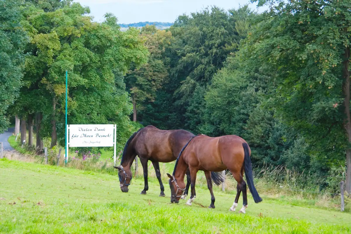 Von hier aus kann man leicht zu gehende Wege über wenig befahrene Nebenstraßen wählen und dort die Landschaft und die Pferde der nahegelegenen Reitanlage entdecken oder sich zu größeren Wanderungen aufmachen an deren Abschluss jeweils die Einkehr in den Jägerhof stehen.