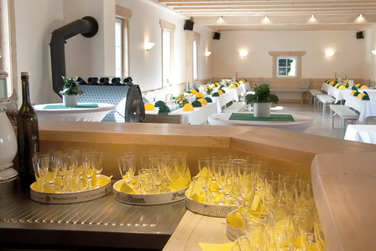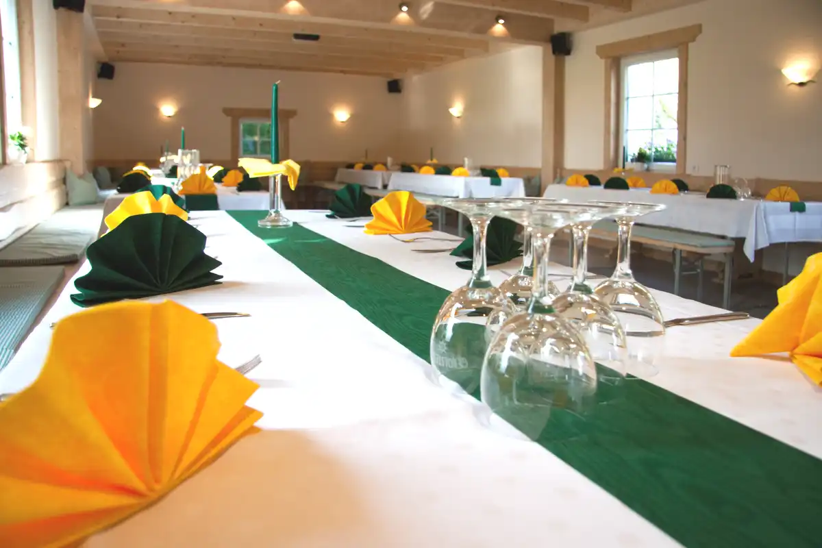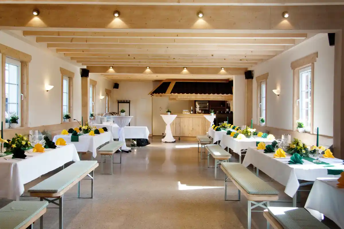 Wir bieten Ihnen Räume bis 15 und bis 60 Personen in unserem Restaurant oder bis zu 100 Personen in unserer großen Partyscheune.